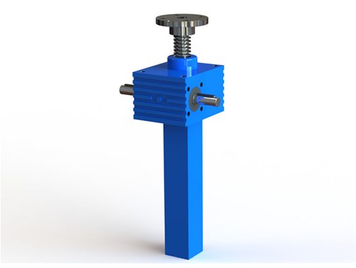 根據汽車生產線橫向調節功能的使用要求,采用兩臺滾珠絲桿升降機水平安裝,兩臺中間通過同步傳動軸連接,由一臺驅動源帶動兩臺進行同步橫向推拉動作,實現調節功能,為汽車生產線調節裝置提供穩定有效的解決方案。
